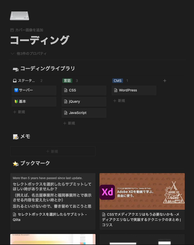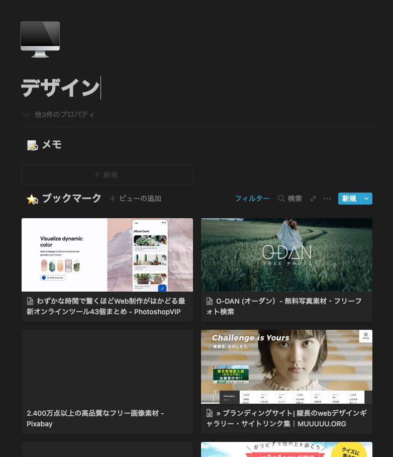 私は長期タスク、メモ、ブクマ、保存した画像、バズツイのスクショなどをNotionに全部つっこんでます。アレどこいったっけ?って現象が起きないのが便利です。Safariのブクマとカメラロールの有益スクショの量が増えてきて、自分の記憶だけで掘るには厳しかったんですよね。結果活用もせずに忘れ去る…みたいなことがなくなったので、導入してよかったー!と思ってます。困ったらアプリ内検索もできるし。